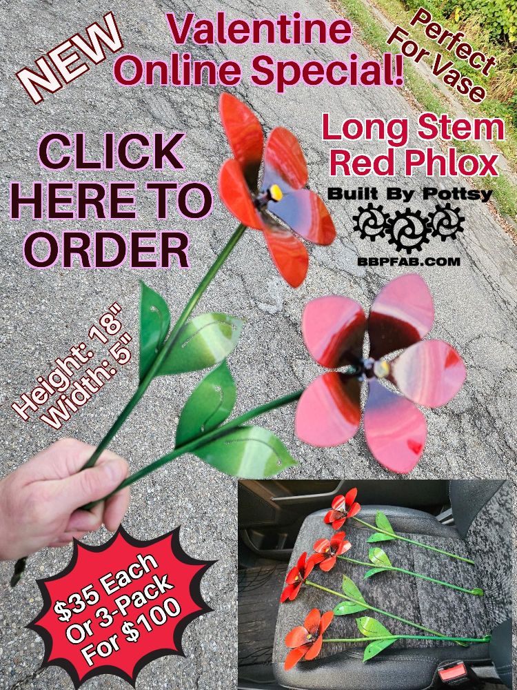 2026 Built By Pottsy LLC, Specializing In, Building Metal Flowers, Yard Art, Pottsy Flowers, Junk Art, Metal Fish Art, Channellock Pliers, Metal Powder Coated Flowers, Signed Dated Serial Numbered Art Work, 17 Years, Patriotic, Metal, Fab, Steel Flower, Pottsy Flowers!