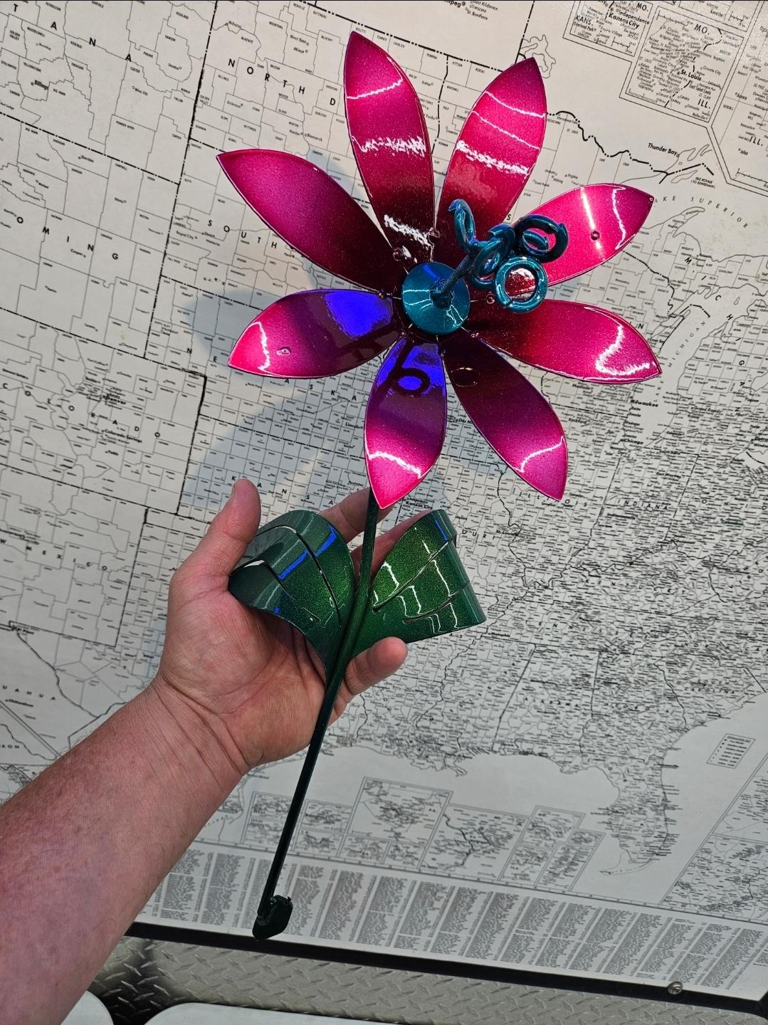 These metal flowers are great for indoors in a vase, pot or planter. They can also go in yards, flower gardens, and or any landscapes you would love to bring color into your home or business. Supplies are limited! Hand Made Items Are Unique And May Vary In Appearance Slightly