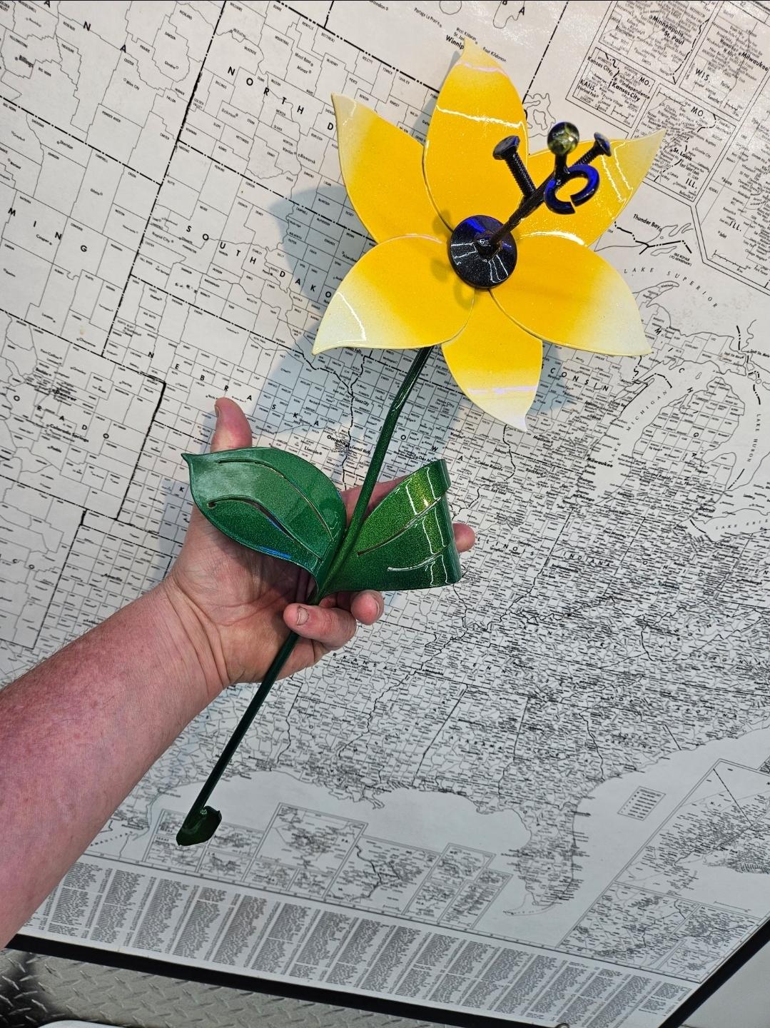 These metal flowers are great for indoors in a vase, pot or planter. They can also go in yards, flower gardens, and or any landscapes you would love to bring color into your home or business. Supplies are limited! Hand Made Items Are Unique And May Vary In Appearance Slightly