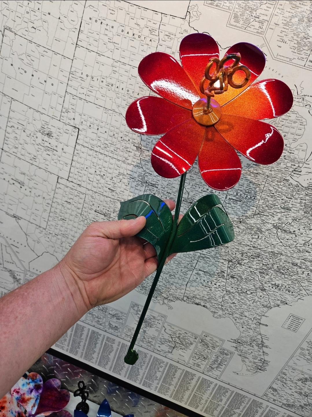 These metal flowers are great for indoors in a vase, pot or planter. They can also go in yards, flower gardens, and or any landscapes you would love to bring color into your home or business. Supplies are limited! Hand Made Items Are Unique And May Vary In Appearance Slightly