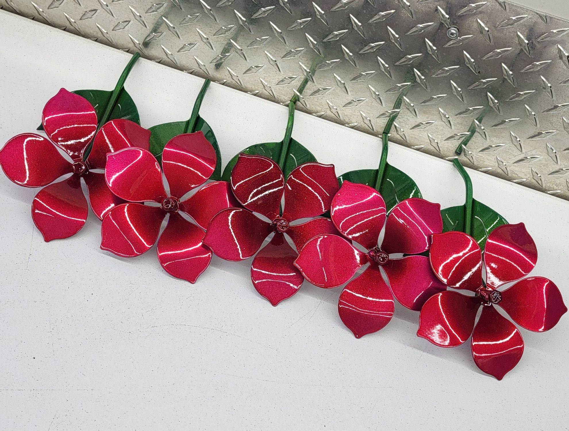 These metal flowers are great for indoors or can be placed outside as well. They make a great gift for that special person, as well as bring color into your home or business.