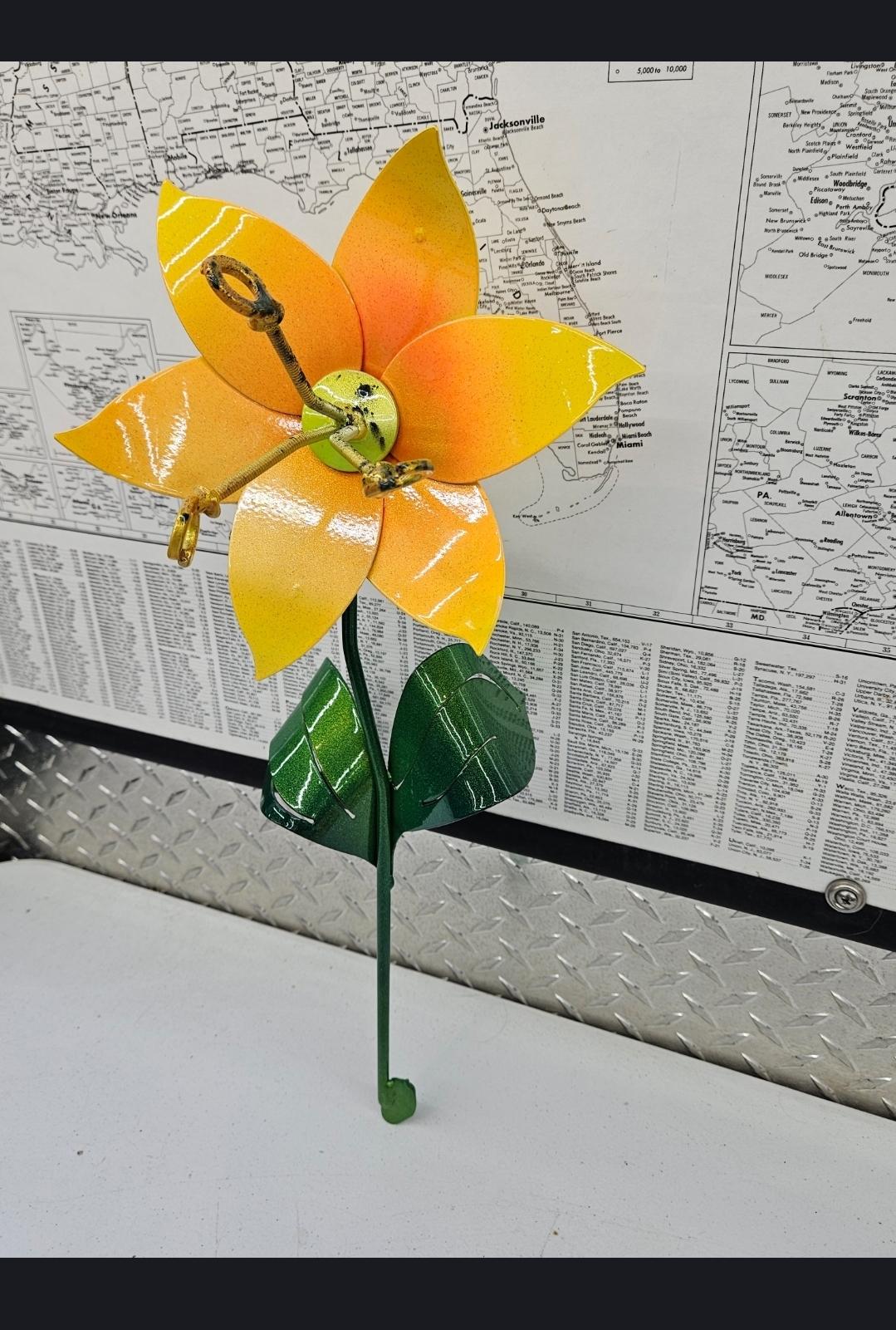 These metal flowers are great for indoors in a vase, pot or planter. They can also go in yards, flower gardens, and or any landscapes you would love to bring color into your home or business. Supplies are limited! Hand Made Items Are Unique And May Vary In Appearance Slightly